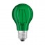 Farvet grøn pære, der passer i alm. E27 fatning. Er f.eks. god til lyskæder og anden dekorativ belysning.